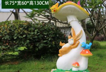 玻璃鋼彩繪兔子蘑菇上休息雕塑