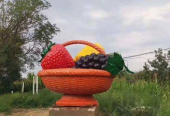 大型彩繪玻璃鋼水果籃雕塑