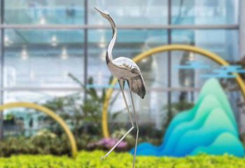 不銹鋼景觀雕塑,鏤空仙鶴閃耀寶貝山林