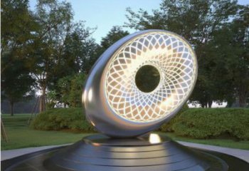 這是一座戶外不銹鋼景觀雕塑,以飛碟為造型,搭配流線型支架,輔以藍色彩光與底部彩虹燈帶,融合科技感與藝術(shù)美,成為城市獨特一景。